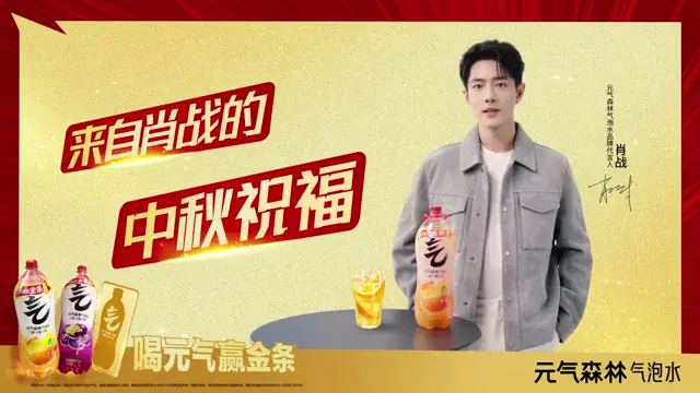 元气森林和代言人@肖战 一起祝大家中秋节快乐! 喝元气赢金条!让团聚时刻更“金”兴~ #肖战给你元气# #肖战元气森林气泡水品牌代言人##喝元气赢金条##元气森林发金条了##元气森林#